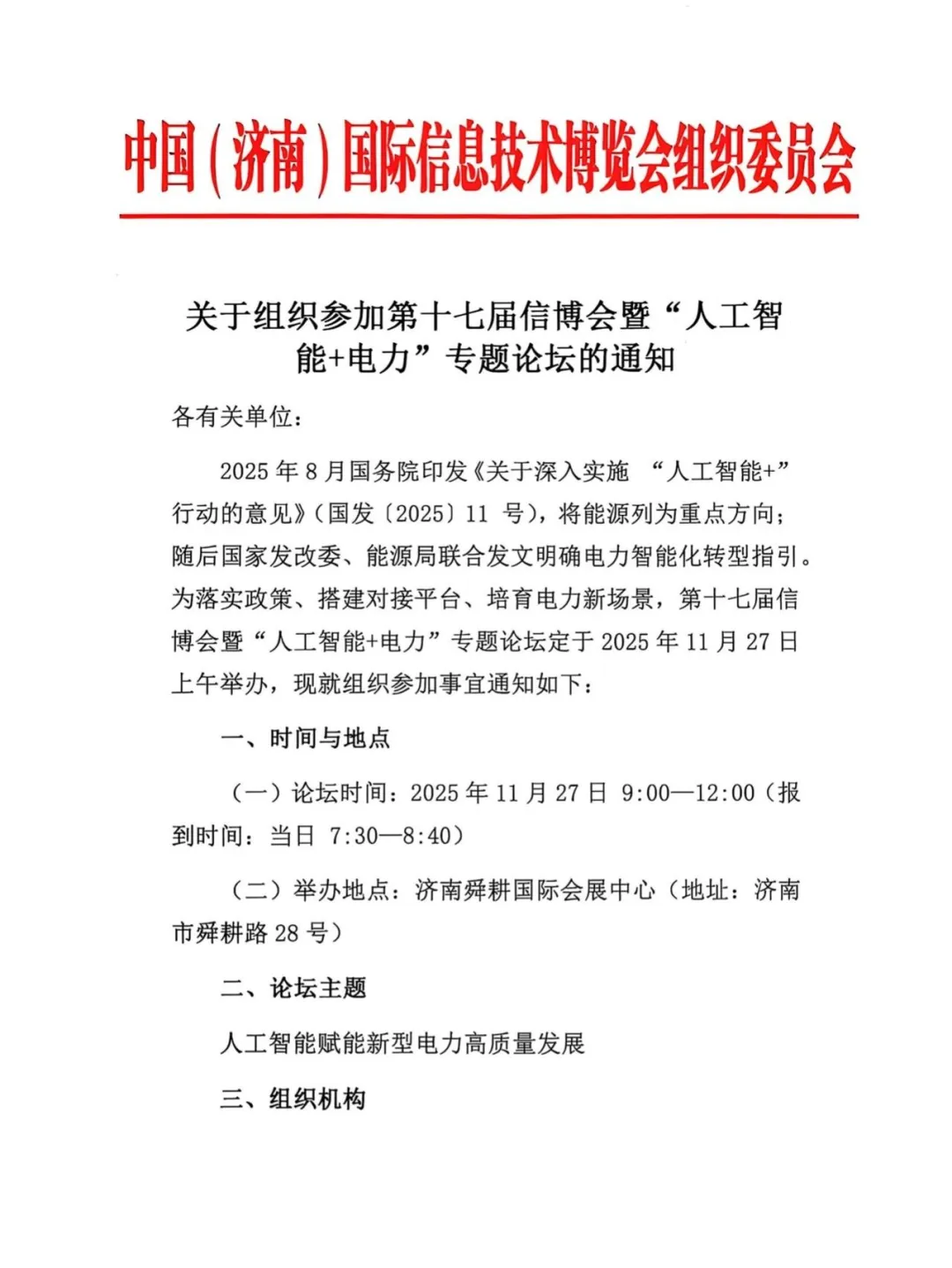 关于组织参加第十七届信博会暨 “人工智能+电力” 专题论坛的通知